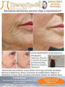 La solución de mesoterapia puede ayudar a aumentar la producción de colágeno, antioxidantes y radicales libres. La aparición de arrugas y pliegues es sinónimo de envejecimiento. La aparición de arrugas puede indicar el inicio del envejecimiento. El 90% del envejecimiento visible de la piel se puede atribuir a la exposición al sol, el clima seco, el tabaquismo y la contaminación del aire.