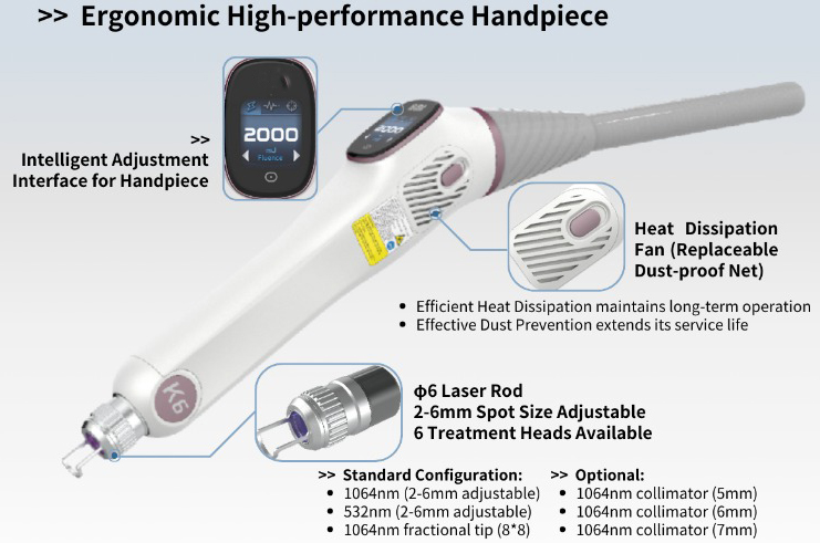 Diám. 6 varillas láser; Tamaño de punto de 2-6 mm disponible
