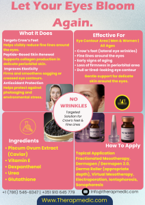 Produto especialmente formulado para tratar das rugas à volta dos olhos embora também trate outras áreas da cara conforme descrito nos benefícios.