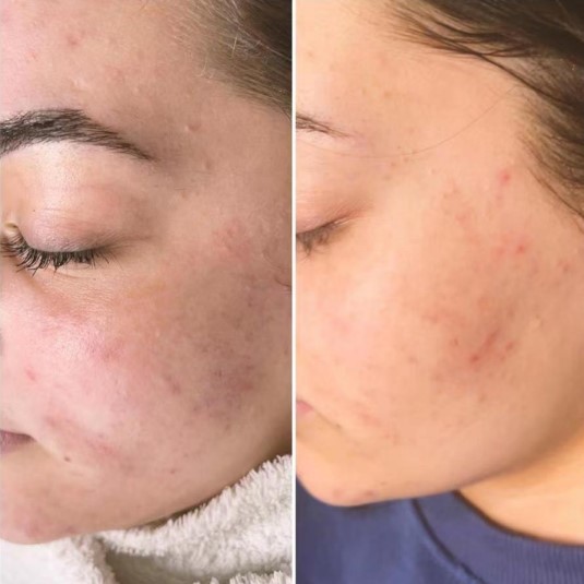 Melhora a textura e o tom da pele: pele áspera, poros dilatados, pele oleosa, rejuvenescimento da pele