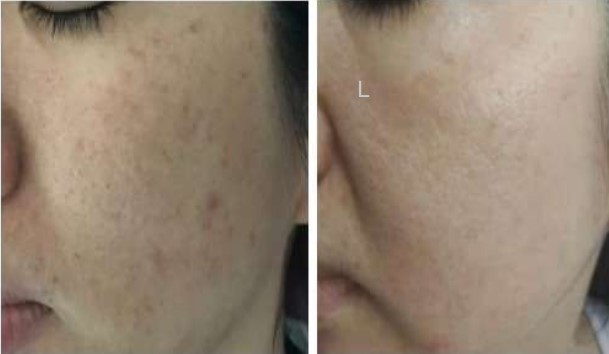 Tamanho de ponto pequeno e distribuição uniforme de pontos, baixo risco de efeitos colaterais na pele. Sensação de tratamento confortável, sem necessidade de anestesia, alta segurança e sem tempo de inatividade.